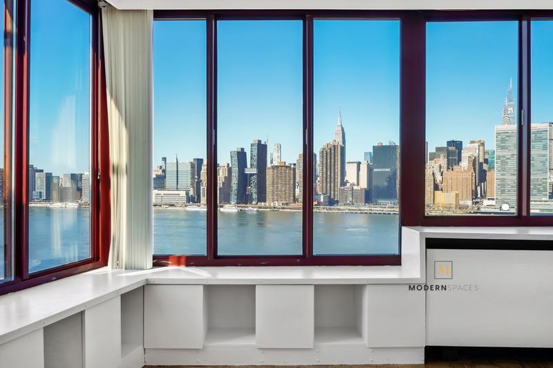 This unit offers a spacious interior ideal for entertaining or enjoying quiet nights at home. Enjoy infamous NYC skyline sunsets while lounging on your private balcony perfect for entertaining friends and family. Oversized, double-insulated windows offer incredible direct views of the skyline, Midtown Manhattan, East River bridges to Long Island City & beyond.