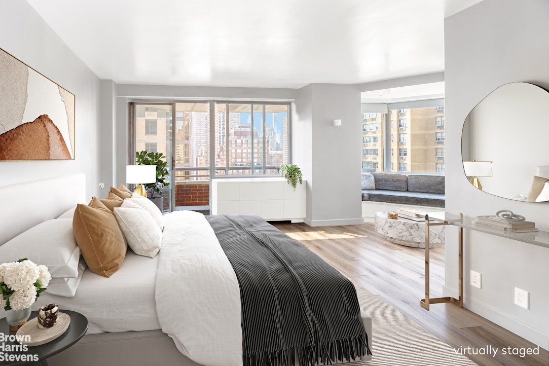 The primary suite is a private sanctuary of exceptional scale, framed by a terrace and a windowed seating area that invites slower starts to the day-perfect for coffee, reading, or even a light-filled mini gym or lounge. Expansive custom storage, including a walk-in closet, enhances both functionality and elegance.