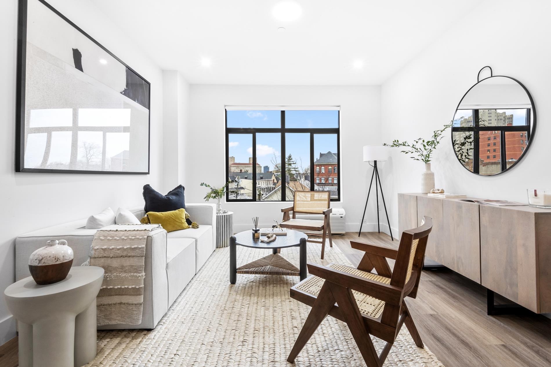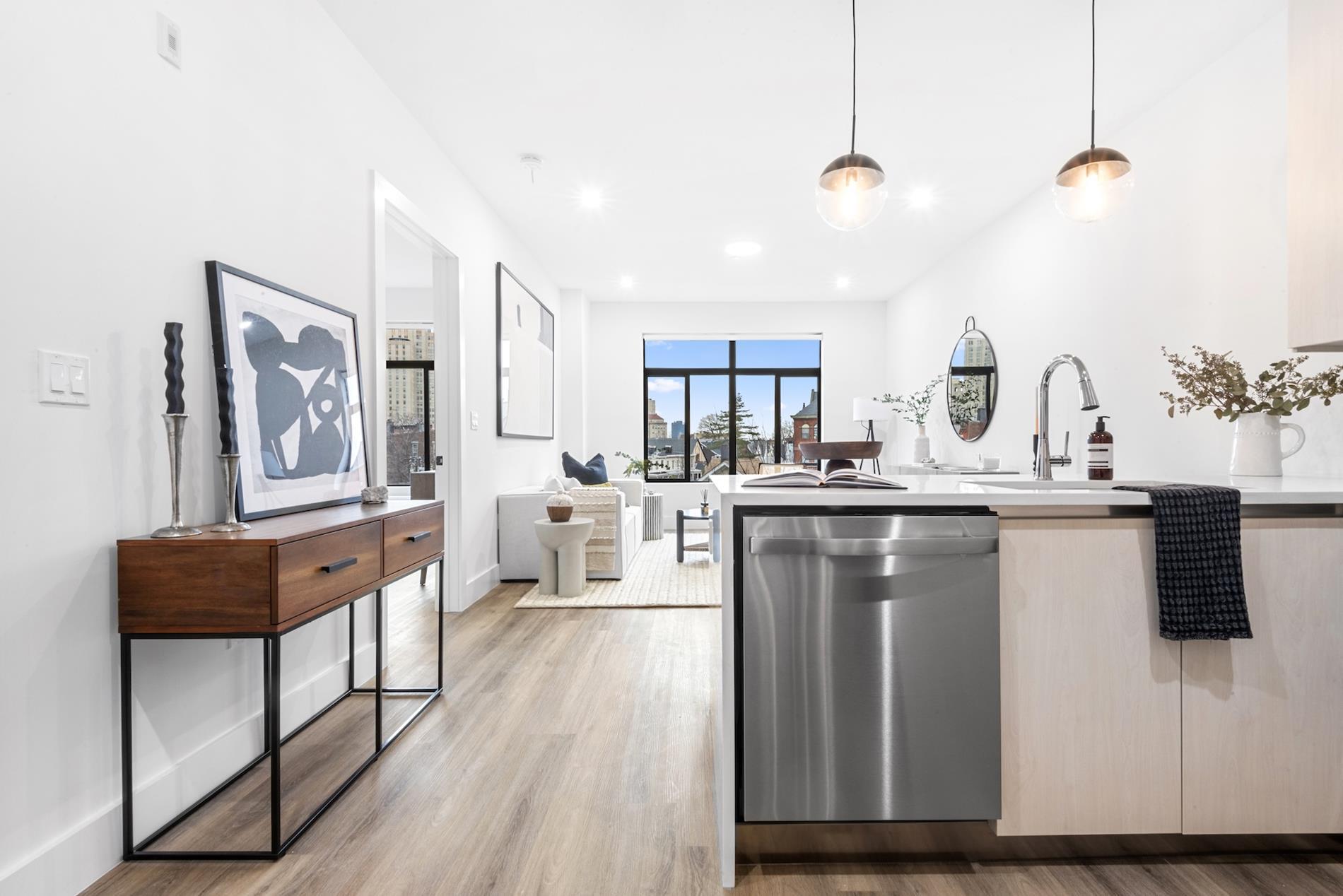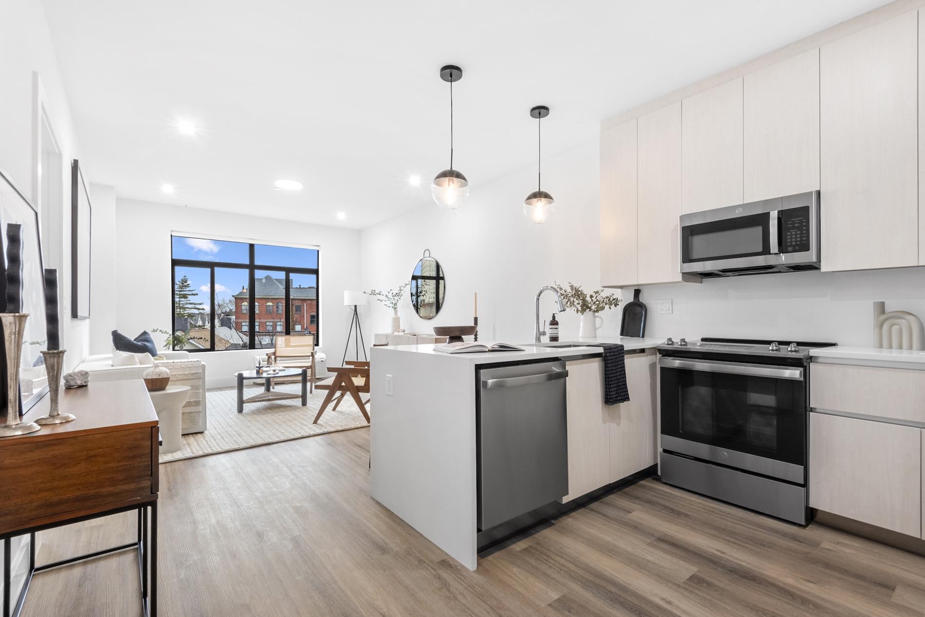 99 storms is a 50-unit luxury rental residence is ready to exceed all your expectations. Its efficient, contemporary design emphasizes quality craftsmanship and comfort. Roomy interiors with striking finishes, Montauk-style flooring and expansive black framed oversized windows that allow for plenty of natural light set the tone for these appealing apartments. - - - Smartly designed kitchens are complete with custom cabinetry enhanced by white Quartz waterfall countertops and continuous slab backsplash, integrated with full size premium stainless-steel appliances. - - - Bathrooms are outfitted with Porcelanosa tiling, dark gray flooring and large Carerra marble wall tile, completed with chrome sinks and fixtures. Every residence includes an in-unit washer-dryer while select apartments are enhanced by outdoor spaces. - - - Thoughtfully curated amenities complement these fine residences including a residents’ lounge with kitchenette; a co-working lounge for a convenient home office setup, and a state of the art fitness center including a weightlifting area and yoga room. A fully furnished roof deck allows residents to enjoy time outside hanging and grilling with panoramic views of Jersey City and beyond. Other essentials include a bike storage room and lower-level storage available for a fee. - - - Located in McGinley Square, a lively micro-neighborhood within Journal Square that’s affectionately known as the “heart” of Jersey City, 99 Storms represents your modern lifestyle.
