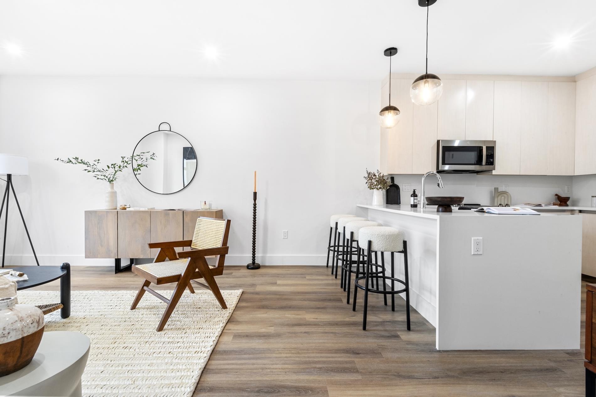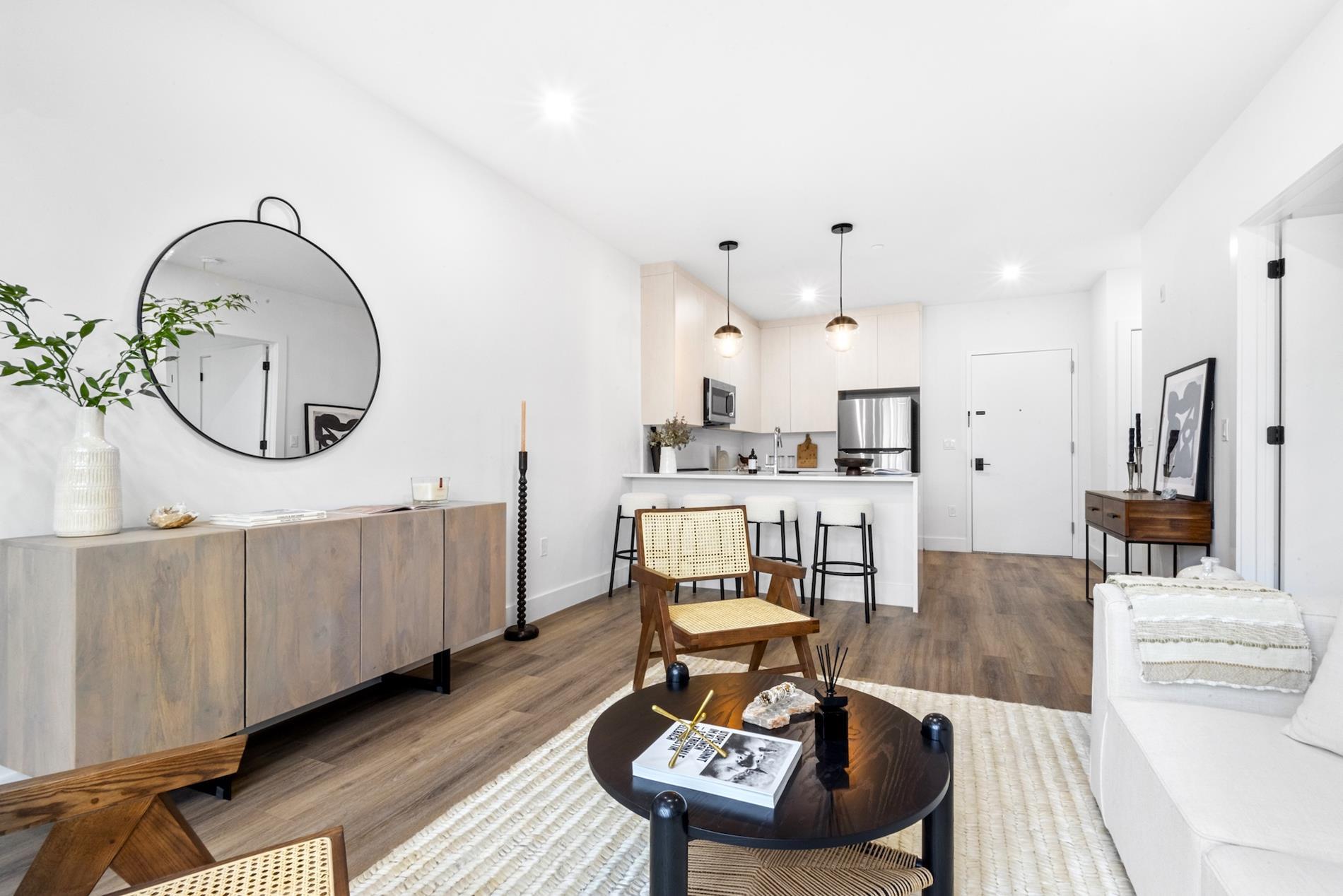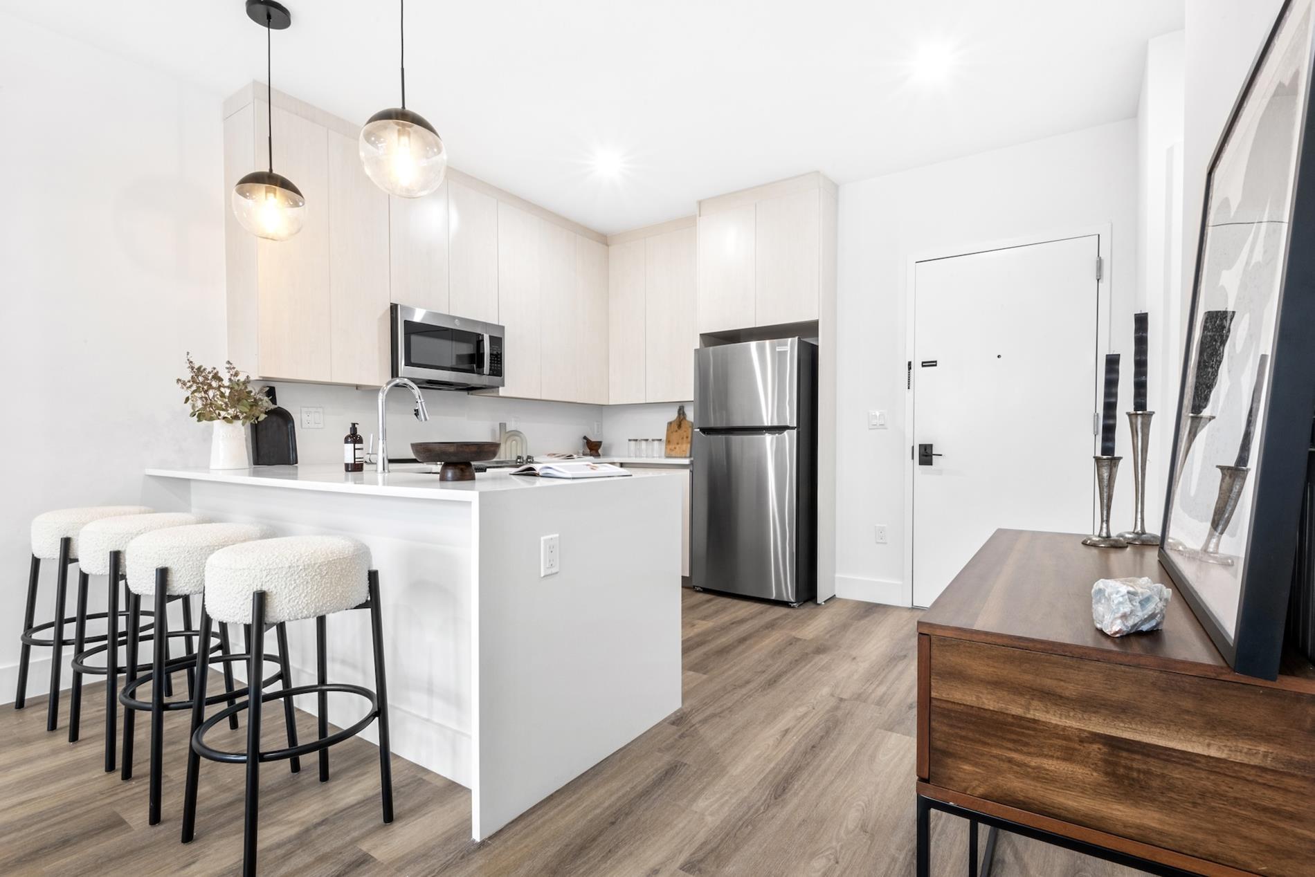 99 storms is a 50-unit luxury rental residence is ready to exceed all your expectations. Its efficient, contemporary design emphasizes quality craftsmanship and comfort. Roomy interiors with striking finishes, Montauk-style flooring and expansive black framed oversized windows that allow for plenty of natural light set the tone for these appealing apartments. - - - Smartly designed kitchens are complete with custom cabinetry enhanced by white Quartz waterfall countertops and continuous slab backsplash, integrated with full size premium stainless-steel appliances. - - - Bathrooms are outfitted with Porcelanosa tiling, dark gray flooring and large Carerra marble wall tile, completed with chrome sinks and fixtures. Every residence includes an in-unit washer-dryer while select apartments are enhanced by outdoor spaces. - - - Thoughtfully curated amenities complement these fine residences including a residents’ lounge with kitchenette; a co-working lounge for a convenient home office setup, and a state of the art fitness center including a weightlifting area and yoga room. A fully furnished roof deck allows residents to enjoy time outside hanging and grilling with panoramic views of Jersey City and beyond. Other essentials include a bike storage room and lower-level storage available for a fee. - - - Located in McGinley Square, a lively micro-neighborhood within Journal Square that’s affectionately known as the “heart” of Jersey City, 99 Storms represents your modern lifestyle.