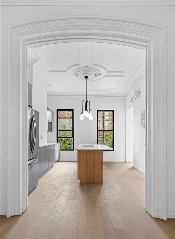 Perfectly situated in the heart of Clinton Hill, the home is just minutes from the Clinton-Washington G train and steps from Myrtle Avenue, offering a wide variety of restaurants, cafés, and local shops.
