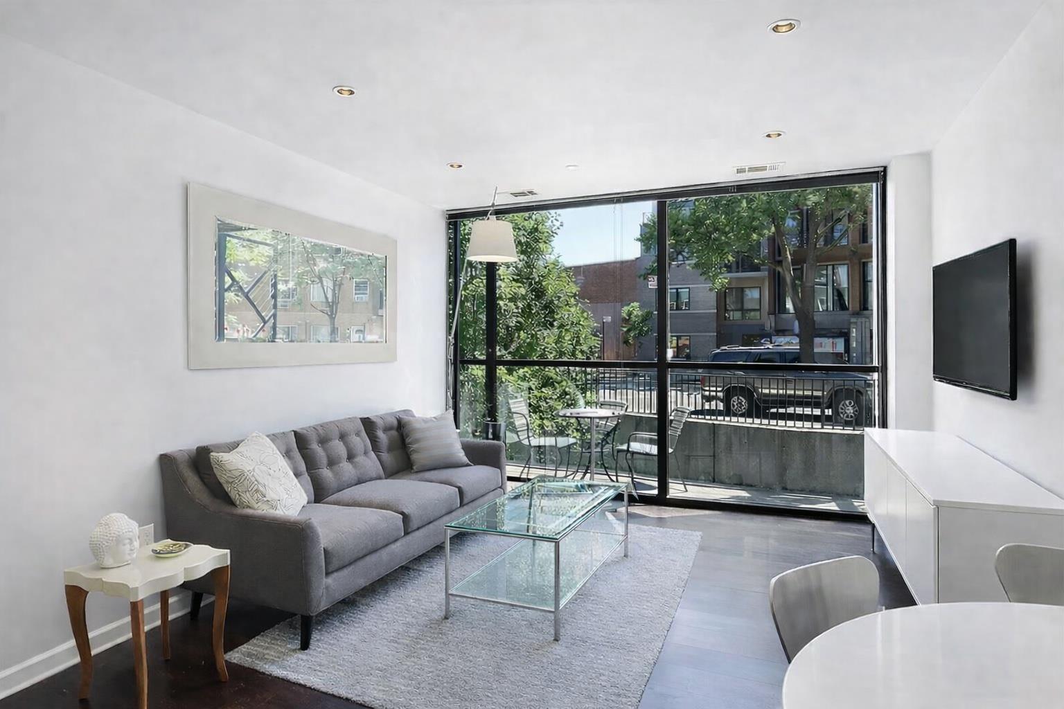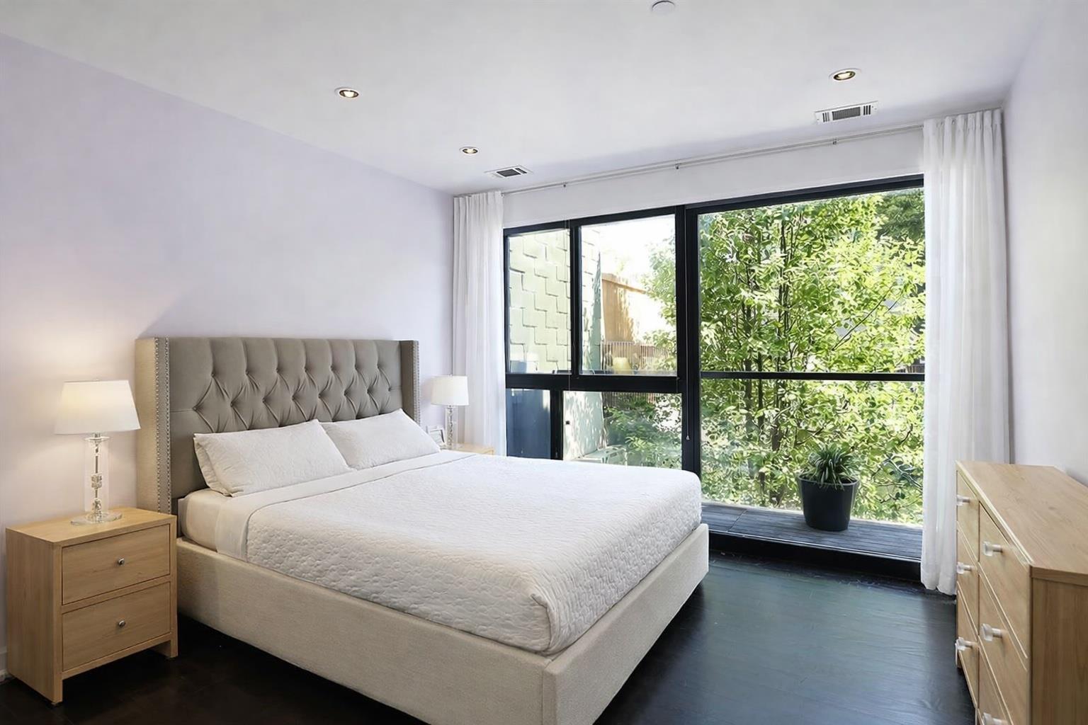 The main level features a well-appointed kitchen with high-end Bosch and Fisher & Paykel appliances and island, an expansive living room with a private balcony, a full bathroom, and a generously sized bedroom that easily accommodates a king-sized bed. The lower level offers a massive recreation space perfect for entertaining with direct access to a 580 sq. ft. private patio!!!! Lower level has a 1/2 bath and a lot of room for additional storage. Unit also includes a w/d. Move in 3/21/26 Pets case by case. Virtually staged.