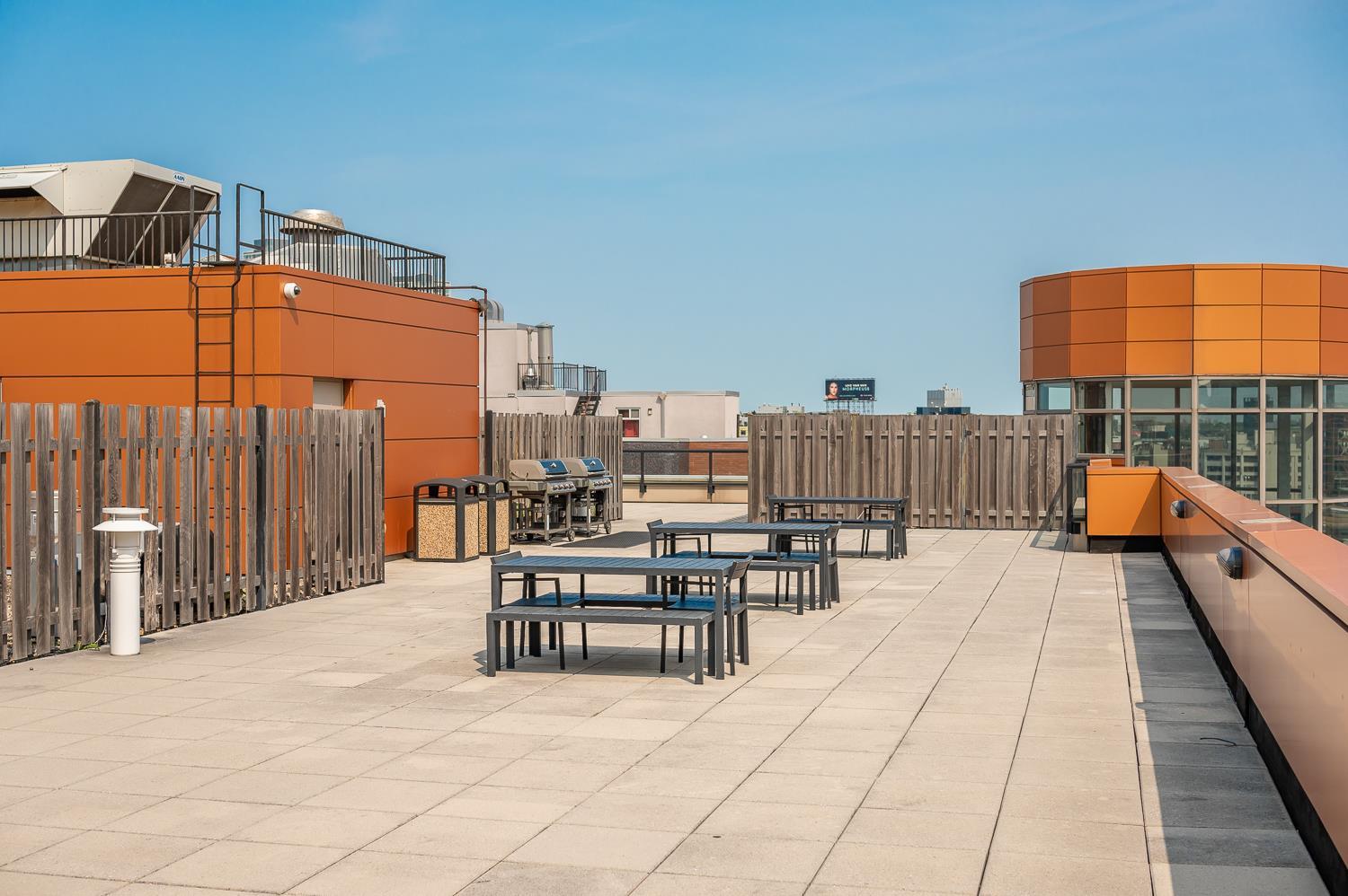 Expansive rooftop terrace with skyline views, sundeck, BBQ grills, and picnic areas